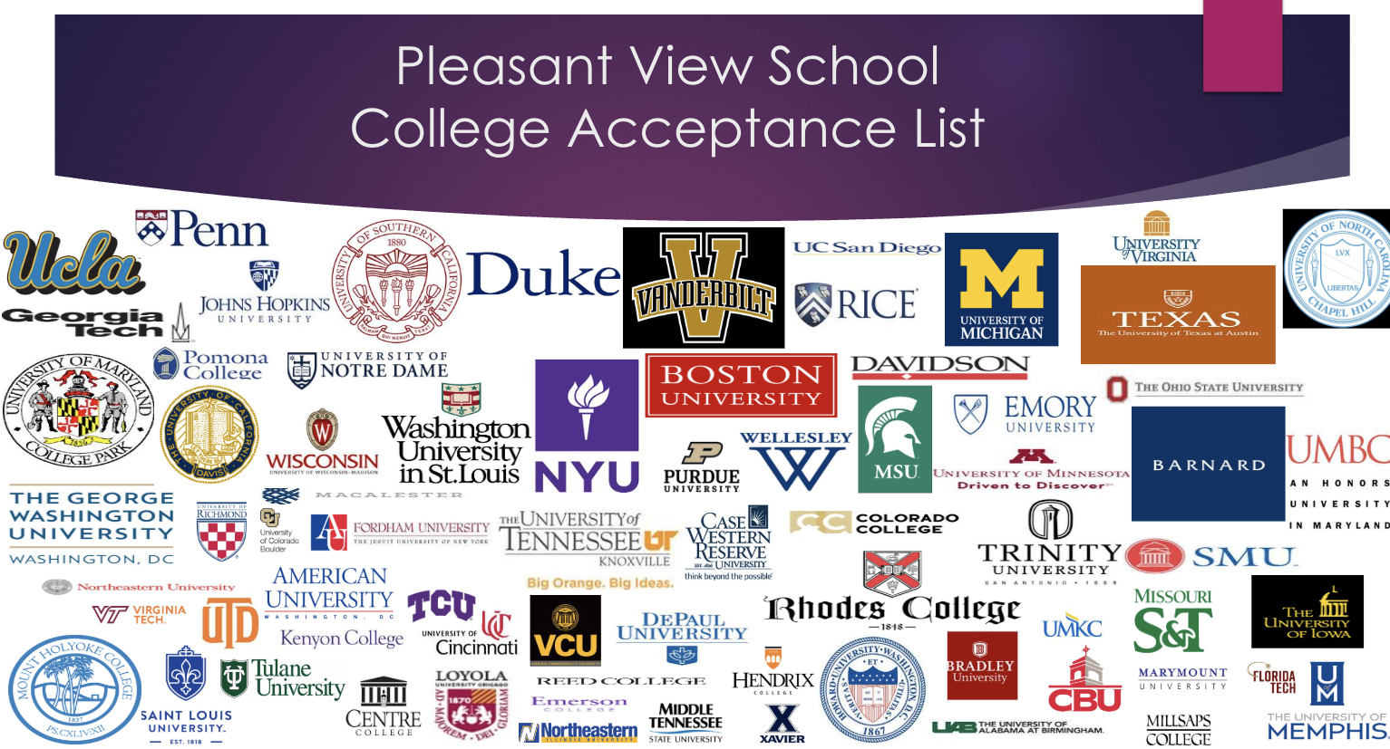 Our students go on to a variety of colleges and universities around the globe. Our college acceptance list shows the institutions to which our students have been accepted.